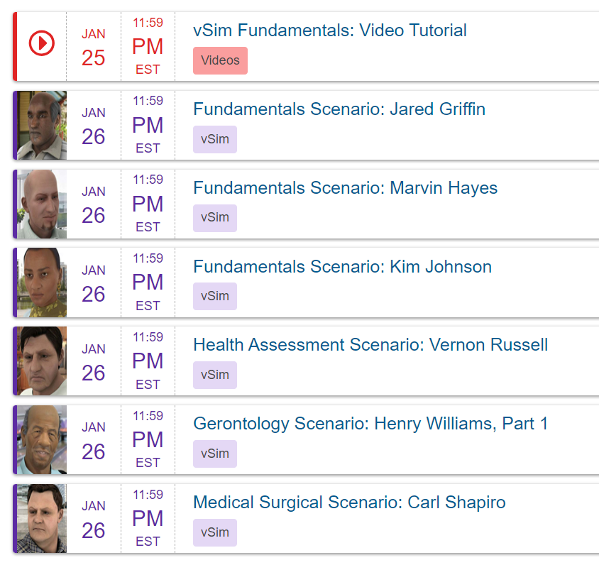 - Complete the following patient assignments (Vsim with 75% or higher & the Pre Quiz, Post Quiz & Guided Reflections Questions